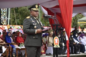 Danrem 102/PJG Brgijen TNI Yudianto Putrajaya saat membacakan amanat Panglima TNI. (Photo/ist)