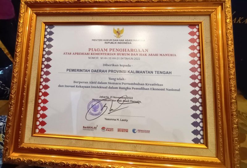 PALANGKA RAYA. Tambunbungai.com – Pemerintah Kota Palangka Raya kembali menerima penghargaan dari Kantor Wilayah Kementerian Hukum dan HAM Provinsi Kalimantan Tengah sebagai kota yang peduli dan ramah Hak Azasi Manusia (HAM). Pengharaan diserahkan langsung Kepala Kantor Wilayah Kemenkumham Provinsi Kalimantan Tengah Dr. Hendra Ekaputra, A.Md.I.P., S.H., MH kepada Walikota Palangka Raya yang diwakili Sekda Kota Palangka Raya Hera Nugrahayu, bertempat di Ballroom Swiss Bell Hotel Danum, Palangka Raya, Rabu (10/5/23).