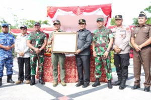 PALANGKA RAYA. Tambunbungai.com – Kepala BNPB Mayjen TNI Suharyano menyerahkan bantuan peralatan untuk penanganan kebakaran hutan dan lahan secara simbolis kepada Wakil Gubernur Kalteng H. Edy Pratowo pada Apel Gelar Pasukan dan Sarana Prasarana Karhutla Prov. Kalteng Tahun 2023, yang berlangsung di Halaman Kantor Gubernur Kalteng, Jum’at (16/6/23).