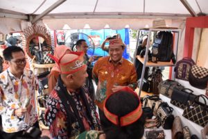 Wagub Kalteng H. Edy Pratowo mendampingi menteri Koperasi Teten Masduki meninjau stand-stand BBI dan BBWI. (Photo/zen)