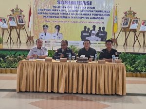 LAMANDAU. Tambunbungai.com — Badan Kesbangpol Provinsi Kalimantan Tengah menggelar Kegiatan Sosialisasi Pelaksanaan Pemilihan Umum (Pemilu) dan Pemilihan Kepala Daerah (Pilkada) Serentak Tahun 2024 kepada Pemilih Pemula di Kabupaten Lamandau, bertempat di Gedung Pertemuan Umum (GPU) Lantang Torang, Komplek Perkantoran Bukit Hibul Nanga Bulik, Lamandau, Rabu (30/8/23). Sebagai narasumber dalam kegiatan tersbeut adalah Kepala Bidang Politik Dalam Negeri Mulyo Suharto yang mewakili Kepala Badan Kesbangpol Prov. Kalteng.