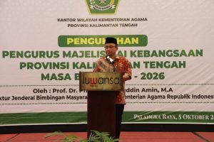 PALANGKA RAYA. Tambunbungai.com – Pengurus Majelis Dai Kebangsaan Provinsi Kalimantan Tengah Masa Bakti 2023-2026 secara resmi dikukuhkan oleh Disrjen Bimas Islam Kemenag RI H. Kamarudin Amin, bertempat di Hotel Luwansa Palangka Raya, Kamis (5/10/23).