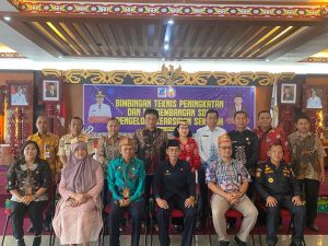 PURUK CAHU. Tambunbungai.com – Dinas Perpustakaan dan Kearsipan (Dispursip) Kabupaten Murung Raya menggelar Bimbingan Teknis Teknis Pengelolaan Arsip Sekolah Kabupaten Murung Raya Tahun 2023 di Aula Ondhui Tingang, Kantor Bupati Murung Raya, Kamis (23/11/23). Kegiatan ini dibuka Pj. Bupati Murung Raya yang diwakili Plt. Sekda Murung Raya Serampang.