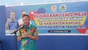 KUALA KAPUAS. Tambunbungai.com — Persatuan Tenis Meja Seluruh Indonesia (PTMSI) Kabupaten Kapuas mengadakan PTMSI Kapuas Cup Tahun 2023, yakni Kejuaraan Tenis Meja Tingkat Pelajar dan Umum Se-kabupaten Kapuas, berlangsung di PTM Mitra Mandiri Group (MMG), Jalan Tambun Bungai, Kuala Kapuas, Kamis (21/12/23). Kejuaraan ini dibuka langsung oleh Sekda Kapuas Septedy yang juga Ketua KONI Kabupaten Kapuas, Drs. Septedy, M.Si.