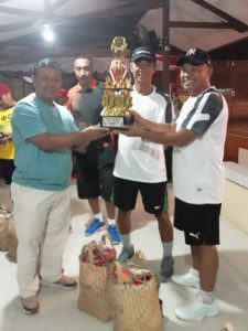 Pasangan Suprapto-David yang berhasil menjuarai kelas bergengsi pada babak final Kelompok B saat menerima tropy bergilir dari Irwasda Polda Kalteng Kombes Pol Adi Seseno. (Photo/ist)