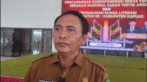 Kepala dinas Kearsipan dan Perpustakaan Kabupaten Kapuas, Suwarno Muriyat saat memberikan keterangan kepada wartawan. (Photo/razikin)