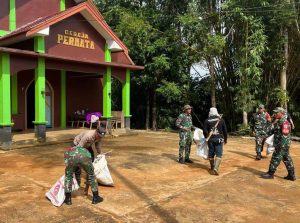 Jajaran TNI Koramil 1013-09/Kecamatan Permata Intan saat melakukan pembersihan di tempat ibadah sebuah gereja.(Photo/ist)