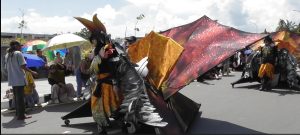 Tidak hanya itu, miniatur burung enggang yang dikenakan seorang remaja putri dan remaja putra juga mampu memukau ribuan masyarakat, bahkan tidak sedikit warga yang meminta untuk berphoto selfi.(tb4)