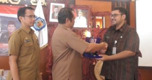 Pj. Sekda Murung Raya Rudie Roy memberikan cinderamata kepada narasumber Launching Aplikasi SISAPAN.(Photo/rosa)