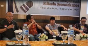 PALANGKA RAYA. Tambunbungai.com – Pengurus Persatuan Wartawan Indonesia (PWI) Kalimantan Tengah menggelar Forum Pemred dengan mengusung tema ‘Peran Media Menyukseskan Pilkada Serentak 2024’. Kegiatan yang mengambil tempat di Ballroom Hotel Aurila, Palangka Raya ini bertujuan untuk mendukung terselenggaranya pemilihan kepala daerah (Pilkada) yang aman, lancar dan sukses di wilayah Kalteng, Sabtu (7/9/24).