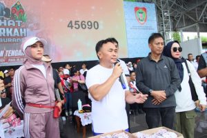 BARITO UTARA. Muara Teweh – Berdasarkan catatan Panitia Pelaksana, sedikitnya 80.000 masyarakat Kabupaten Barito Utara yang dating dari berbagai penjuru desa dan kelurahan memadati Arena Stadion Tiara Batara sebagai tempat Start dan Finish Jalan Sehat berkah yang digelar Pemprov. Kalteng, Minggu pagi (13/10/24).