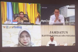 Hadir pula secara virtual dari tempat masing-masing Deputi Bidang Ketersediaan dan Stabilisasi Pangan I Gusti Ketut Astawa, Kepala Divisi Hubungan Kelembagaan Perum Bulog Epi Sulandari, serta Direktur Barang Kebutuhan Pokok dan Barang Penting Bambang Wisnubroto.(tb4)
