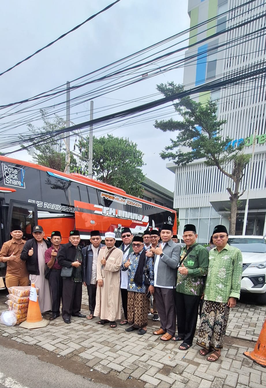 Rombongan Wisata Religi PWNU Kalteng photo bersama di depan hotel sebelum melanjutkan perjalanan.(Photo/van)