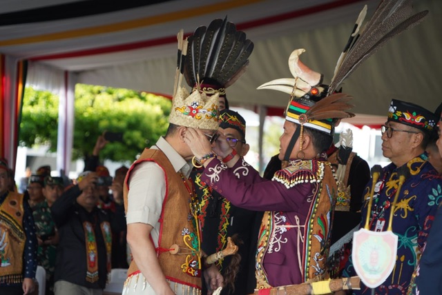 Pada momen istimewa ini, Gubernur Agustiar Sabran menganugerahkan Gelar Kehormatan Adat kepada Menko Pangan Zulkifli Hasan sebagai warga kehormatan masyarakat Dayak Kalteng.