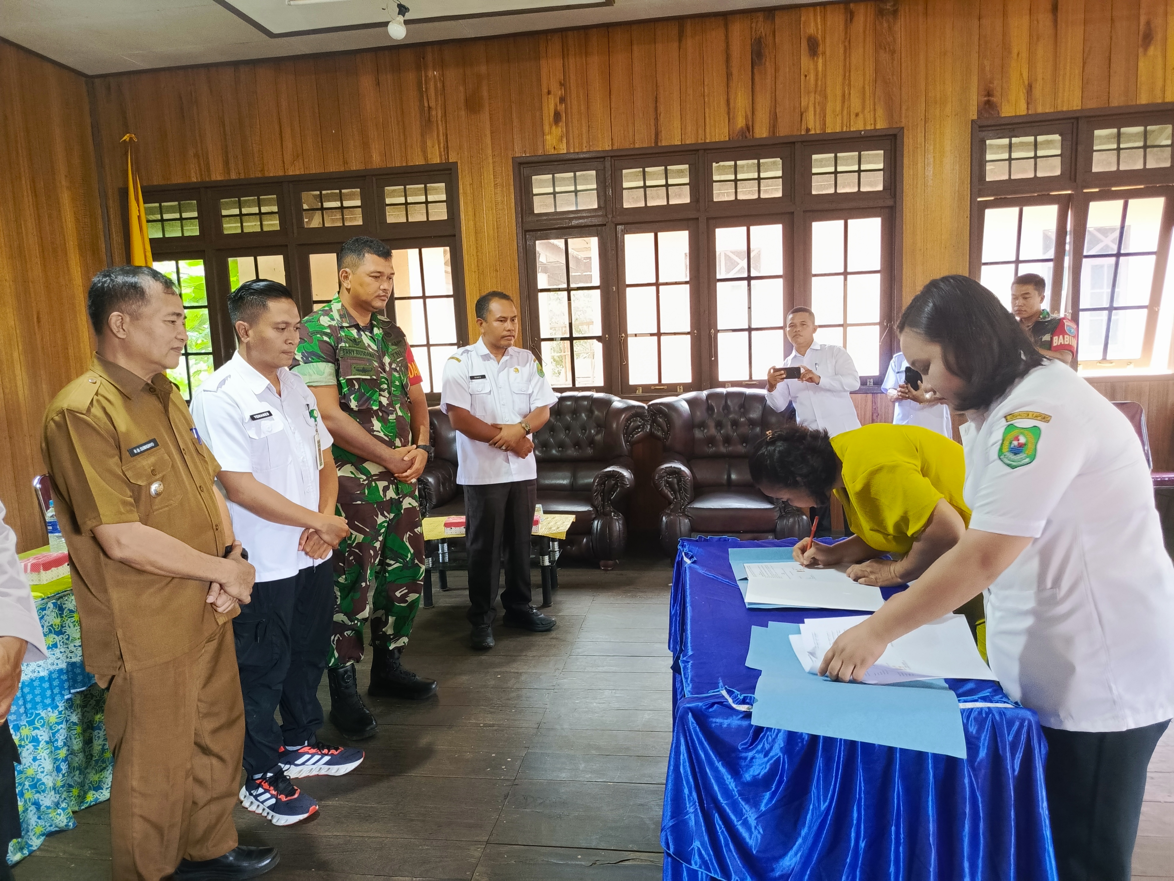 Penandatanganan MoU tersebut disaksikan langsung oleh Camat Kapuas Hulu Suwigno, S.H., Plt. Kepala UPT Puskesmas Sei Hanyo Yohanes Fransiskus, S.Kep., Ners., Danramil Kapuas Hulu, Wakapolsek, serta sejumlah tokoh masyarakat lainnya. Dalam kesepakatan tersebut, ditekankan bahwa Dukun Kampung tidak lagi diperbolehkan menolong persalinan secara mandiri di luar faskes, dan harus bekerja sama dengan Bidan Puskesmas untuk mengarahkan ibu hamil melakukan persalinan di fasilitas kesehatan.