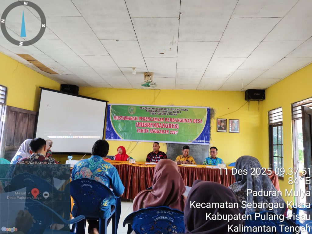 Paduran Mulya, Pulang Pisau – Desa Paduran Mulya, Kecamatan Sebangau Kuala, Kabupaten Pulang Pisau, telah melaksanakan Musyawarah Perencanaan Pembangunan Desa (Musrenbangdes) dalam rangka penyusunan Rencana Kerja Pemerintah Desa (RKPDes) tahun mendatang dan DURKP Tahun Anggaran 2027. Acara ini dipimpin langsung oleh Kepala Desa Paduran Mulya, Hendra dan juga Ketua BPD Desa Paduran Mulya.
